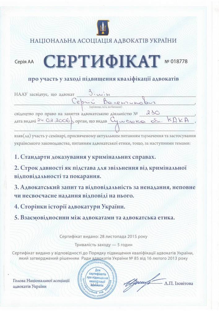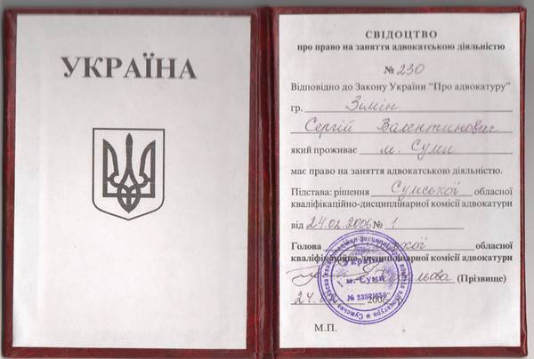Документы и сертификаты адвоката
